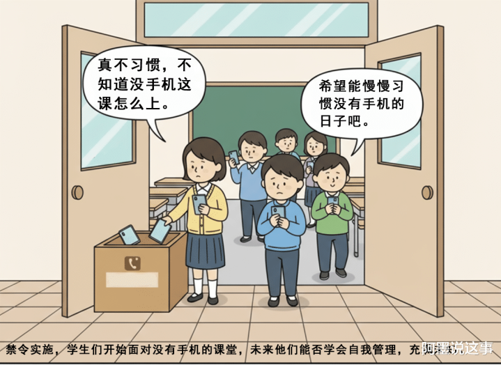 这里面有对教育的两种思考:是靠禁止来营造秩序,还是教孩子们自己管理手机?