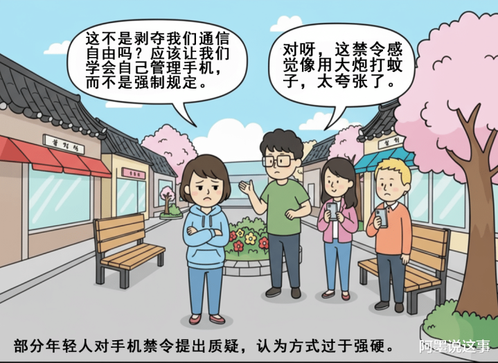 韩国家权机构觉得禁令不侵犯 ren 权,但反对者说,现代人的“数字权利”岂能轻易剥夺。毕竟手机是他们的社交命脉,也是焦虑源头。